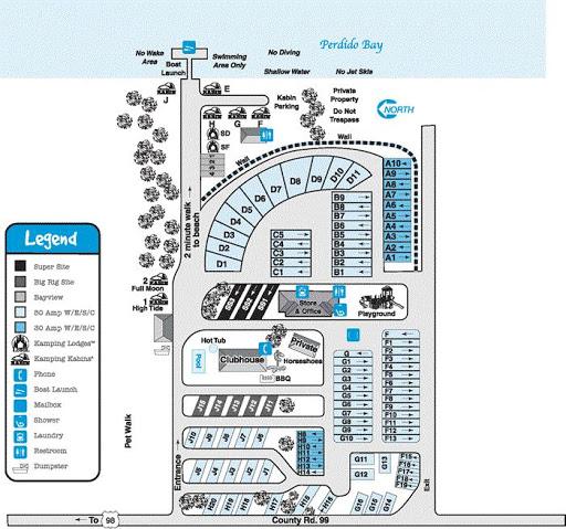 Stayed 3 nights. Park was very busy, tried to stay longer but was booked. Pool was hoppin’, closes at 10 with last hour being adults only. For it being so busy, it went silent when 10 pm rolled around. Has water access which is nice. About 30 mins from Perdido Key. 45-50 mins from Pcola. Will stay again. Did not use any facilities.