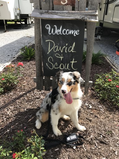 We were escorted through the security gates to our new safe haven! The owners, Jimmy & Angela, quickly came over to greet us. They are the sweetest couple and their pride of ownership shows in every aspect of this oasis that they've created! Every corner of this park is welcoming....from the hammocks, swings, corn hole & chess games to the clean & beautifully decorated laundry and bathrooms. Our dogs loved going to the dog park and the cast iron tub for washing the dogs is a nice touch.