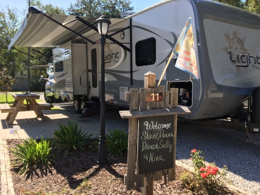 Lovely little park! Bathrooms are exceptional, owners are so gracious and helpful. Quarters are a little tight but everyone is so friendly you don't really mind. They have an evening campfire that you can attend with a libation if your choice. A great way to meet fellow rvers. We stayed for a week in a 39 foot 5th wheel. We will definitely be back if we are ever in the Mobile area!