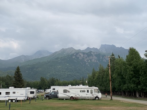 Very nice park with full hook ups, about an hour from Anchorage. Phone works well, WiFi is not bad. Good Sam discount.