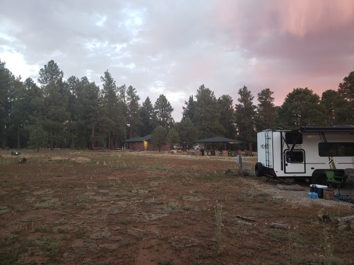 Small rv camp site on a National Guard Base. The camp has showers and bathrooms. They have power and water hook ups and a dump site within 300 yards of the camp for 5 dollars.