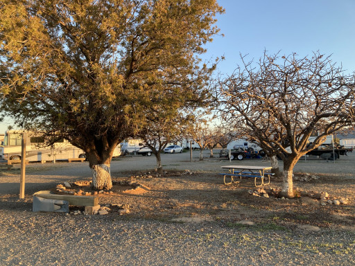 The park is easily accessible from the highway. Maneuvering through the park is easy enough in the daylight but I would hesitate to navigate in the dark. Sites are gravel/dirt with full hookups. The park is rustic but clean, staff was very friendly, and nights were surprisingly quiet considering the park’s proximity to the highway. Unless the local area has some interesting attractions, I don’t see much long-term-stay appeal, but it is perfectly suited for a pleasant overnite stop. We certainly won’t mind staying here in our future travels.