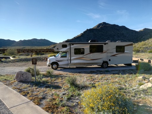 Nice unknown spot just off I10. No hookups but beautiful place. Lots of hikers hiking in surrounding hills. You won’t get cell service here. Nice pads and big sites. We stayed here in 2018 in 44’ motorhome.