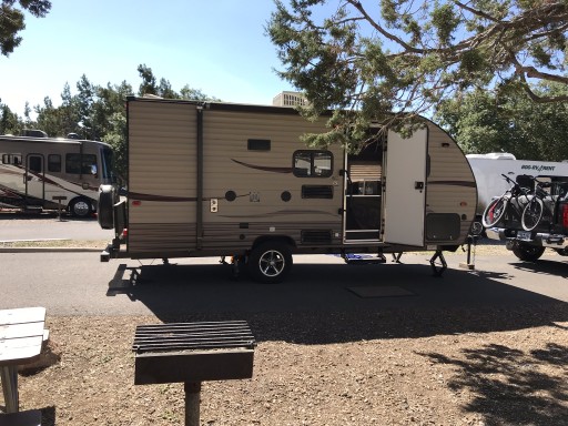 Great area. Sites fairly level long blacktop sites. Nice patio area with a picnic table. Sites arranged well so you don’t feel scrunched in. Many hiking trails and wildlife wandering through the park. Only has toilets, no showers, no wifi, cell service or cable. Can shuttle to anywhere in the park from the front office and close to the marketplace. Very relaxing atmosphere.