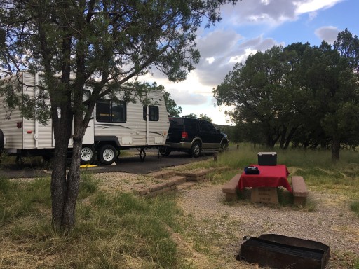 Lots of paved RV sites no connections, freshwater is available but not by water hose connection. Lake has a boat ramp but is limited to 10 horsepower maximum boats. Rents kayaks, etc. FDA website indicates 36' max, which I have and was not a problem, but watch for other vehicles on about 6 hairpin turns. Cell service does work here through telcel in Mexico, in the campground only. Has vault toilets.