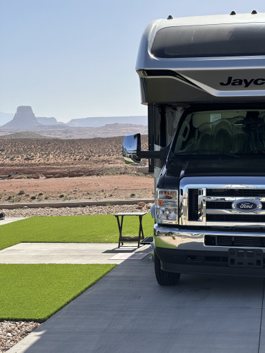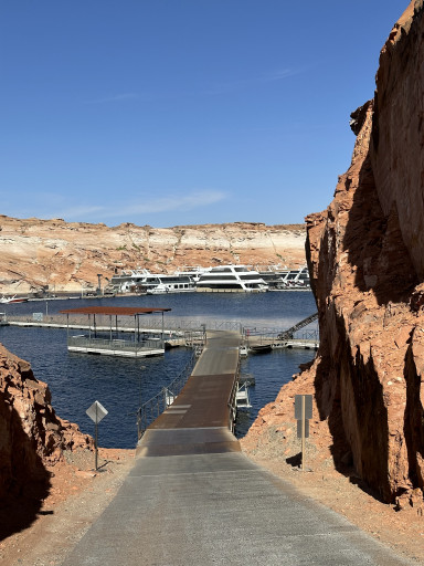 This is a very clean park. Not a lot for amenities in the park but still very comfortable. There are newer nice gas grills, a pergola, and fireplaces. Each site is completely landscaped with artificial grass and gravel. The pads are concrete and fairly level. Hookups are great. Views of the canyons and buttes are beautiful however with the lake level so low you can’t see water from the campground. Cart service is provided from the rv park to the marina. All the staff have been very friendly. We definitely plan to return.