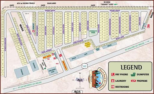 We really like this place and have been staying here during Quartzsite shopping trips for years. Three things we like: it backs up to BLM land where are dogs love to roam free, the big, pull through sites, and it's quiet. After fighting crowds at Quartzsite it's nice to come back to peace and quiet! Have experienced almost all of desert life from here. Rented quads, bingo, paragliding, cafe is ok, and golfed. Definitely stay here again!