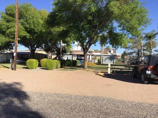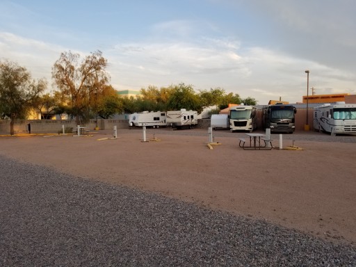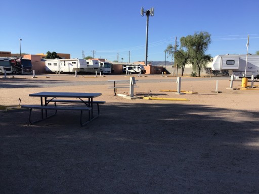 Nice central location. Full hookups at all sites. No laundry or bathroom/shower facilities. Several laundromat nearby. A little noisy due to industrial location and veterinary hospital adjacent. Friendly staff in park and Elks lodge. Lodge open daily.