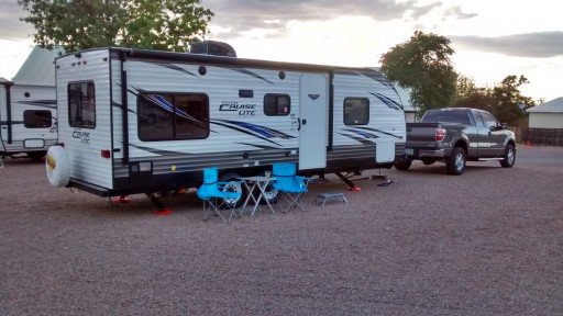 We had reservations to stay one night here. We pull into town, see the gate for the park and stop in the parking along the street. We often do this because we are pulling a 46 foot long toy hauler and don't want to blindly pull into a random driveway. We go into the office to check in, and as I'm filling out their reservation info, the old guy behind the desk ask where our rig is. We say it's "right there on the street because we wanted to make sure this is where we pull in. It's a long rig, and we dont want to get stuck"
