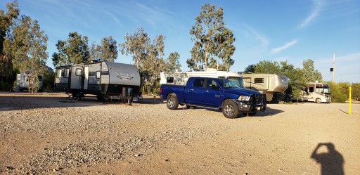 Decent sized gravel lot. People were friendly. Laundry area was clean. Do not think there were any showers. Surprisingly quiet. Grounds well kept. Hiking trails adjacent to campground into desert. Only issue was septic close to 40 ft from our drain with bit if an incline. Many dogs. Staid in 40 ft 5 wheel and would use again