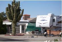 Quiet, very well-kept, lots of palms, cactus and blooming bushes. Sites are a bit narrow. We were there at the end of July/beginning of August, i.e., low season, so there were plenty of empty sites and we didn’t have anybody next to us, but I think it would be tight had there been. Very nice pool, bath houses were immaculate and attractively tiled. Close to shopping and services. We’ll happily stay there again.