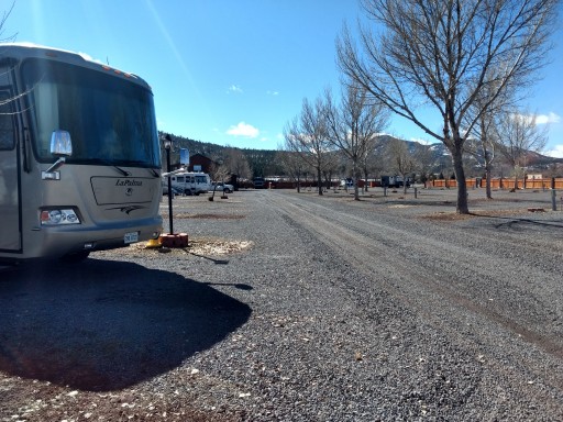 Stopped here and stayed for a week, so glad we did , couldn’t ask for nicer staff! Gravel sites, but nice and level, awesome showers and restrooms! This time of year, the spa and other water related recreation was closed. Williams is a must see town very Patriotic and since we are “BornAgain Christians”, I was humbled by how many others we met! I highly encourage when you visit the downtown area to stop in where you see a window display that says “Hope For The World”and meet Cindy and Michael Rioux, they help Veterans and more!