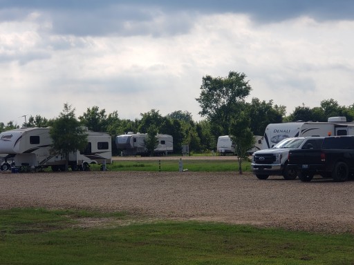 We had horrible storms last night and again today. I'm not comfortable driving my travel trailer at 45mph gusts and hail so here we are. Nice, newer store. Small parking lot. There is a train that goes by about a half mile away. Good overnight spot.
