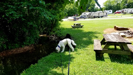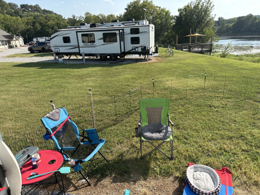 This is probably an excellent site in spring or fall. However summertime is hot at the site because of the lack of shade trees. Site 15 is by the water and has a large area for dogs or family. There is a staircase down to the water next to site 8. The fishing is good. It’s a pet friendly site however if your dogs bark neighbors will complain. The manager is friendly. They do not have trash pick up service; you just take your trash to a dumpster at the end of the camp, which is not a big deal. No grill available but has picnic tables and fire ring. WI-FI aid very good.