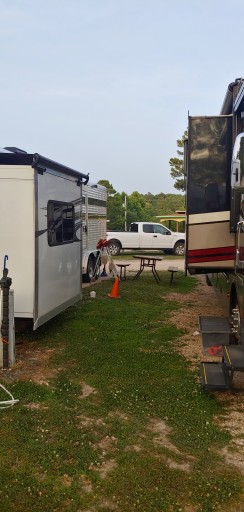 Quiet & clean park. Sites are a little too close but OK. Staff escorts you to your site & helps direct you into your site.
