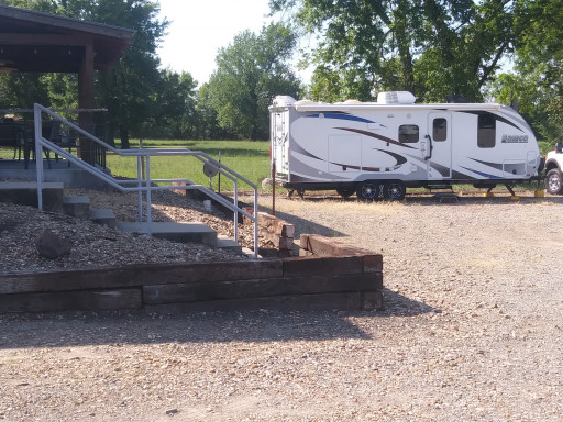 This parking is for Elk members only. The Lodge has one 30-amp plug near a water spigot on the S. side of the building (behind the trailer). There is plenty of boondock parking on the grass (where the motor home is parked).