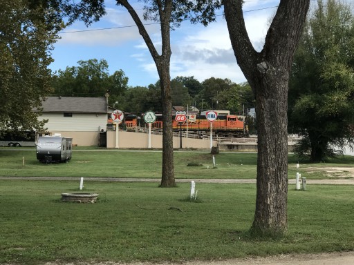 Such a cute little town and an adequate RV Park. Terry, the manager, was very friendly and accommodating. Slight problem with our electric hookup (neutral reversed), but we switched to a different plug and it was good. Located between the river which is lovely and the train tracks which have a plentiful amount of loud trains passing at all hours.