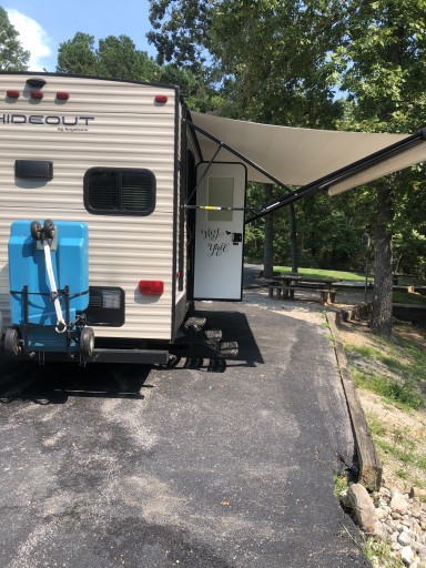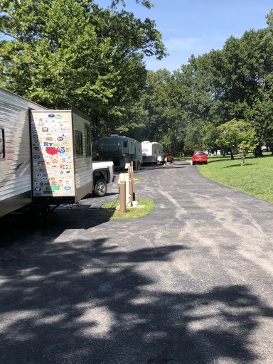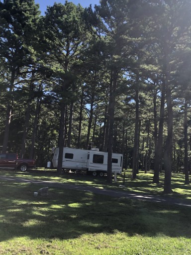 We were very pleased with our site #7 very level, and plenty of shade. Very clean well cared for. Nice and quiet. We paid 1/2 price with our Golden Age card ?. NOTE: Make sure you bring yard guard and fly traps, flys were awful, but once you get them under control you can relax, also beware of chiggers, my husband wore flip flops one evening to cover the grill and he got all bit up, wear sneakers. (All part of the fun camping ?)As far as the beach and playground, It’s a bit of a hike down hill so best to drive the kiddos there. There is a nice gift shop at the marina for small supplies, souvenirs, ice cream or even pizza. Enjoy!