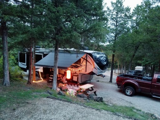 Super cute and secluded RV park. The host’s were nice, helpful, and accommodating. We got there a couple of hours early and we were able to settle in. Down the road they were working on the power and we were notified by phone that it may affect us for a few hours. It was nice of him to have called so I don’t fault them on what was out of their hands. We didn’t have electricity for most of the night, but we did have our generator so we were good. Their check-in/store had fire wood, ice and treats you could buy. Also they had a good selection of DVDs you could borrow. All in all it was nice! Only 20 minutes from Branson and about 20-30 minutes to Buffalo River. Oh, and it was very quiet which we liked. We stayed in site 26 (pull thru) which was shady for the most part.