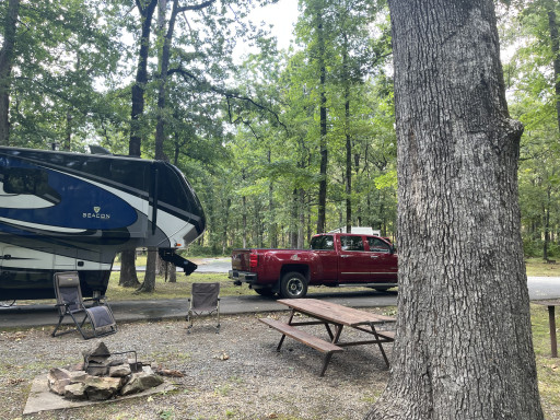 Really nice campground, sites are level and spacious with plenty of shade. Not a lot of traffic very quiet place on the river. We stayed in F13 and enjoyed our stay. Bring you mosquito spray as you will need it when the sun goes down. Well kept grounds with electrical (30 & 50 amp) and water hookups with dump station at campground entrance. Will definitely be coming back.