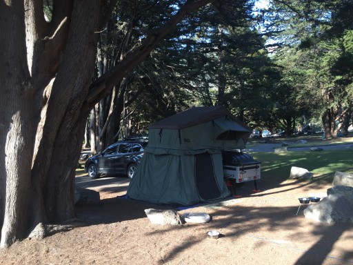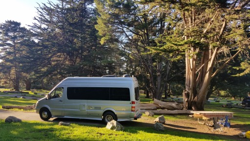 Great campground! Spots are spaced out pretty well and are pretty easy to get into. Dog friendly. There is traffic noise during the day as it is right next to the highway but not much traffic at night so quiet for sleeping. You can hear the ocean waves too. Big picnic tables at each site and lots of shade. Almost right across the street from Sand Dollar beach so a short walk and you're there. Awesome beach for watching the sunset - the dogs & I had almost the whole beach to ourselves. Definitely would stay here again!