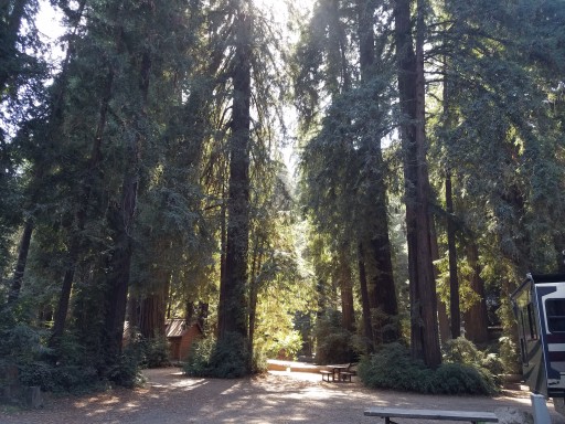 Great Campground though a bit pricey. Sites were close together but were easy to get into. Great views as it sits somewhat up on the side of the mountain. Driveway is a bit steep and tight coming in. Dog friendly. Bathroom was clean and shower was hot. Very nice pool area. Also had a great steep hiking trail that ended at a great place to watch the sunset