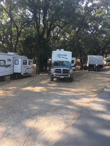 After a steep climb with curvy roads 6 miles off the freeway, we came to a very dry campsite. The sites were super tight and very un level. We had to back up over a very big drop off to get into the site. It was a challenge to set up. The trailer was leaning 4" when we first stopped at the most level spot. We ended up not hooking to the sewer because it was impossible to get the trailer level near it without hanging over the drop off at the end of our site. And I was told we had a bigger site... wow. The playground was sad, so we were going to go to the swimming pool. That was until we found out they'd just caught a rattlesnake by the pool. Talking to our neighbors, they'd caught several rattlesnakes in the park. No mention of that when we checked in... and with 3 kids, a heads up would be great. The pictures on the website are super misleading, just FYI. For the price, I expected a lot more. I wouldn't suggest staying here, especially with small kids.