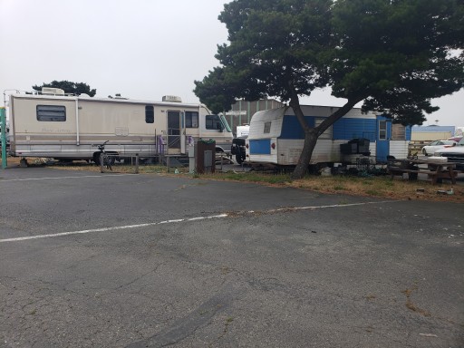 Friendly staff, nice office, large pull through sites and some back in sites. Situated between the Marina and the beach just to the south, in walking distance. Definitely not a picturesque place to stay, but will do. Staff advised of thefts being a problem recently, such as bicycles. Met some very friendly tenants who've been coming here for years. Electric only 30 amp as 50 amp still not working. Several tenants with older, beat up rigs. Very close to beach access. Very dog friendly. Marine service center adjacent to property with old, broken down boats up on skids. Changes to a 1 star. Was woken up at 2 a.m. by nearby tenants talking loudly and unintelligibly. When speaking to a long stay tenant he said they were "tweekers." After complaining to management, saw a 45-55 year old Male and a female riding their bmx bikes through our RV site. Both looked very tattered, weathered and the female appeared to have no teeth. This place needs major work and probably new ownership.