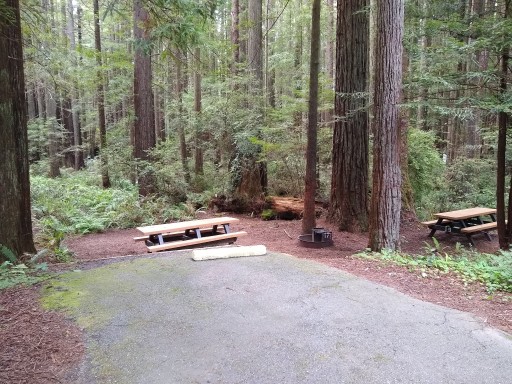 Car camping with fire rings and bench tables at each site. Water spigots regularly spaced. Clean campgrounds. Decent space between sites. Children's play area in park includes horseshoe pits. The real treat here is the second growth redwoods with a small stream and short foot-paths throughout. For just a few acres this county park makes you feel as though deep in the woods.