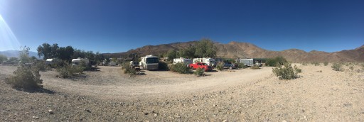 This is the best RV campground in the Death Valley National Park. It's 45 to 90 minutes from all the sites of Death Valley. Registration for the campground is located at the gas station. We were able to park our 40ft rig easily in the pull thru site and park our Jeep next to us. Not much room left for a campfire or lounging at the picnic table. The sites are narrow but there are pretty bushes & flowering shrubs between the sites to add a little privacy. The bathrooms were clean and someone came around regularly to empty the trash & recycling. There's a nice little bar/restaurant across the street that has great food! The owner stopped by to talk and give us some info to site seeing. Nice family owned place that is clean and well kept. Of all the places we drove around, this place is hidden from the dust storms and most of the heavy wind blowing around the lower elevations resorts. No cell service or wifi in the area, so enjoy the view & company you have with you!