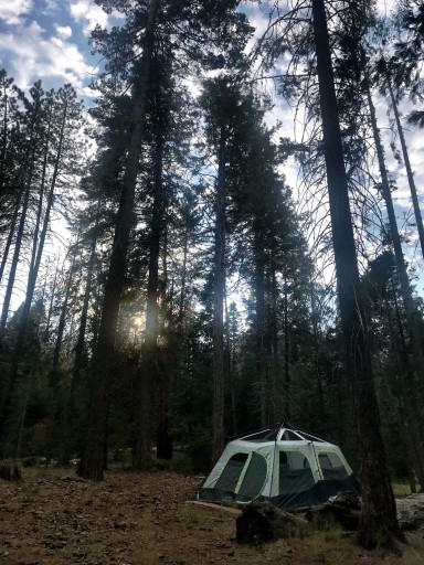 We stayed here in our 28' fifth-wheel. The site had an RV dump, restrooms, a few faucets through out the camp, bear proof containers for food. There were several large sequias or sequia stumps in the camp sites or close to them. Beautiful place to stay. Camp host was very nice.