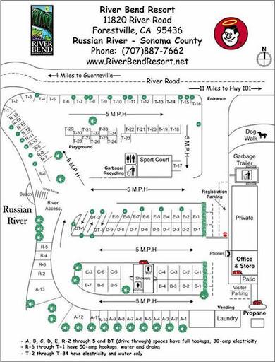 We booked T4 and had the largest area for the RV. we had a ton of shade and room. It was a short walk through the cute campground to the river where there’s a rock beach and you can float all day. There’s a pub right next door. Cute girls working the front office did a contest for kids and hid three stuffed dogs around for them to find. I thought it was great....