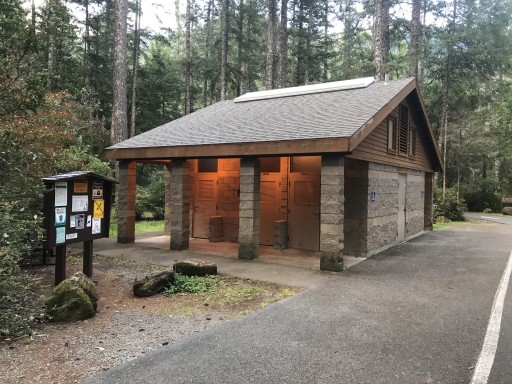 East of Gasquet. Host . Showers. Flush toilets. Nearby river. Flat sites. Trees. Well used.