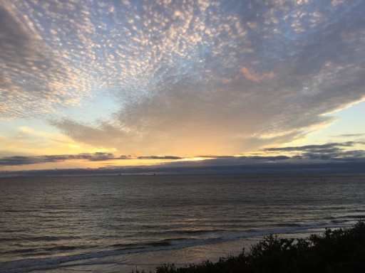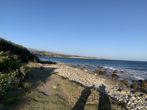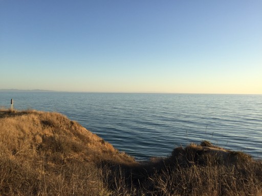 Here we are February and it is beautiful and warm here lovely view of the Pacific and hardly anyone else here Bathrooms are closed but we're pretty self contained there are trash receptacles but haven't found a water faucet that works hopefully there's a sewage dump site somewhere here but we're really digging it
