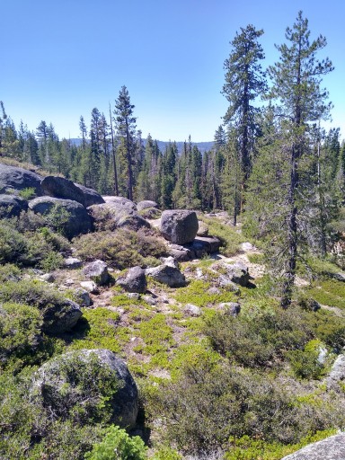 Close to Bear valley, if you need supplies. There's a small creek that runs through the campground for splashing around. Vault toilets are available. Potable water is usually available after the spring thaw. Dumpsters are available as well. There's no fishing or proper swimming here. You'll need to travel elsewhere for that. Lake Alpine it's just up the road.