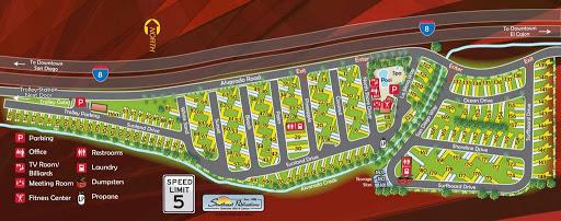 Tight quarters, some effort at greenspace. has a pool that looked clean (we did not use it), laundry facilities were clean. Full hookups so we did not use comunity shower or toilet facilities. For an urban park this is OK. Located right next to Interstate highway8 it is easy to get to, but the highway is very loud. Only time the road is not busy is like between 2 and 3 AM. Staff was nice and helpfull.