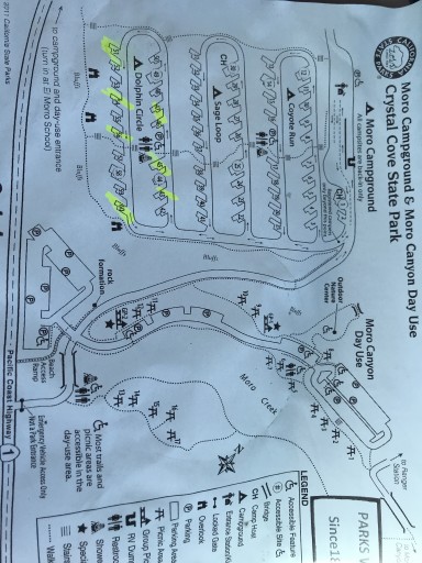 This state park has everything, beach access, ocean view from my campsite, mountain biking to the canyon, or cruising along the ocean. Very expensive for partial hook up. And token shower. I camped in my class a.
