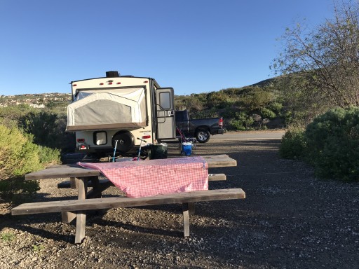 I spent four days with my small RV here. Is a smaller camp but all have views to the ocean. There are trails with spectacular views all through the park. Great for hiking or mountain biking. There is also a paved trail on the other side of PCH going pararell to the ocean. The beach is beautiful, also by the bottom of the park. You feel far but Shopping and dining places and the center of Laguna Beach is within 5-10 minutes drive. Sprint and Verizon reception is great. It is now one of my favorite place to be. You have everything nearby. It is the most expensive state park I've seen, it's $75 for a partial hookup site per night and the tent sites are $50.