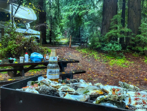 This is supposed to be the first pay to camp park in the usa. It has miles of hiking trails through the redwoods a beautiful creek and even a few 1000 year old redwoods. This is a tent and camper only campground. Rigs over 30 feet may be turned away. It is sold out on reserve america every summer weekendHu. We use it as a convenient base for visiting our bay area friends