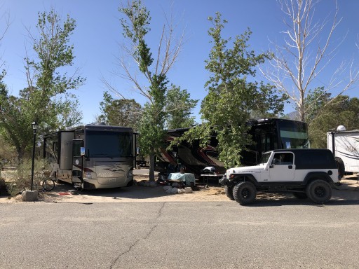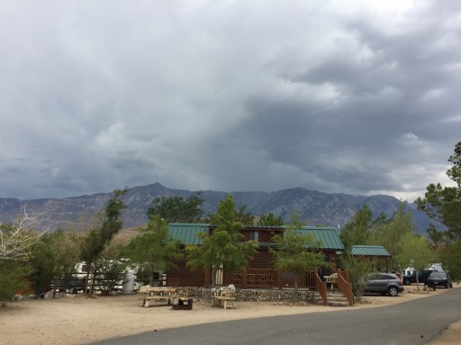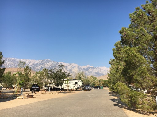Campground is conveniently located off 395 just before Lone Pine. Campground was clean with many amenities—pool, jacuzzi, horseshoes, club house and store. It is reasonably priced. The location is great access to Mt Whitney, Death Valley and Manzanar. We didn’t use restroom facilities. We would definitely camp here again.