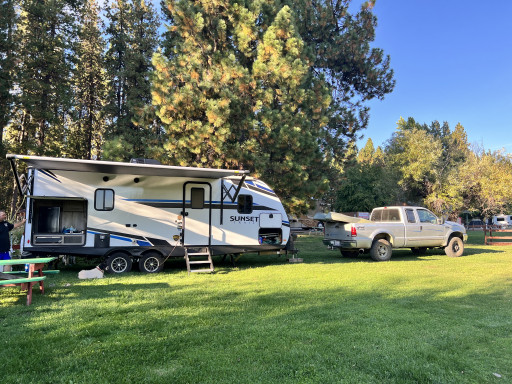 Nice park, well cared for, lots of green space. Two horseshoe pits, a couple of covered group areas to BBQ with friends etc. Many trees, management is very nice, good places to dog walk. Having said all this, our biggest complaint is, the noise! Dance Country is right next to Hwy. 89 which makes for a super noisy stay. It wouldn't be bad if the windows were closed but I'm not a "window closed" kind of person. That being said, if you were to pre-plan the area and get a good grassy site further from the Hwy, it would be 5 stars. We stayed here for three nights in a 40' motorhome.