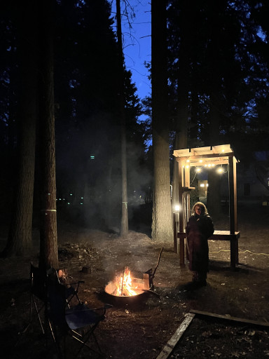 Love this place. Its winter. We are in the back in tent area with fire ring. Firewood everywhere. Every body else is on the otherside of the office in RV area. The deluxe campsites have 110 & a cool light set up.