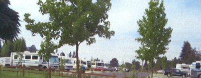 Nice grass sites are paved and wide enough. There are picnic tables at each site. For some reason the hookups are at the front of the back-in sites.