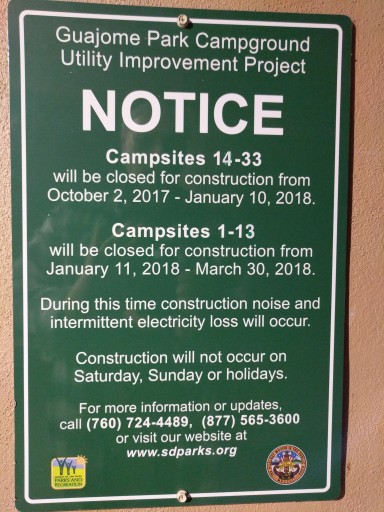 Lots of construction evident, 1/2 of campsites closed during construction. Clean restrooms, pleasant staff. Love to visit again when the construction is complete. A sign states that the Utility Improvement Project will run thru March 30, 2018. Looks like they are adding sewer to electric & water campsites.