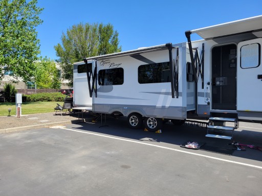 Petaluma Elks RV Park was lovely, peaceful and very clean. You must make Reservations for FHU sites. Sites have large grassy area with a few trees behind each site with tables & chairs plus a garden with tomato & green beans brushes and herbs to pick. We will Definitely stay again!