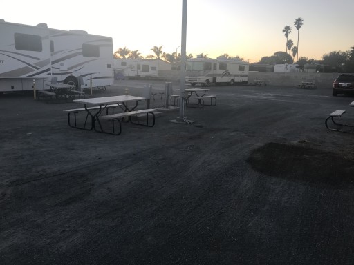 A dirt parking lot. Location to the beach is nice but unless you like staying inside your rv or being gone site seeing the camp site doesn’t offer much. There is a nice pool but no grass anywhere and no fire pit at your site. Your not allowed to let your dogs relieve themselves on any camp sites. The dog run they provide for this is maybe 8x10 in the back of the park where there are a lot of run down permanent rv’s. The urine smell is horrendous and I wouldn’t let my dogs walk into it. We had to take our dogs out of the park to go. Will not return.