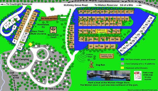 Very nice full service RV park, nice level spots in amongst pine trees. Nice store with all the necessities for fishing and a few items you may have forgot to bring. Wishon reservoir is about a mile down the road. Too far to walk as the road is narrow and busy. Long windy Road off of Highway 168 to get to the park. Would stay again.