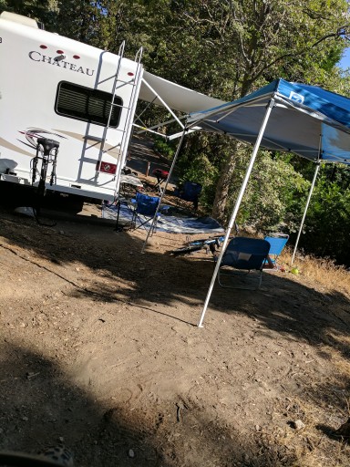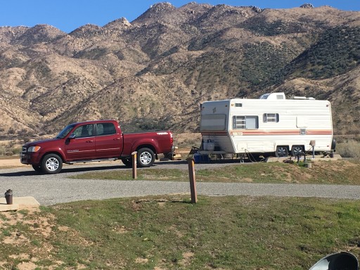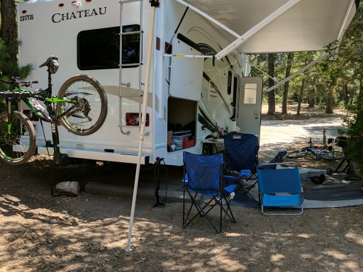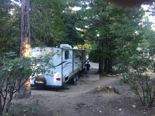 During the hot SoCal summer, this is our favorite place to get away from the heat. The sites are very spacious and each has a fire ring, table and a bear proof storage box. The lower loops have electrical hookups. Water faucets can be found throughout the park. The restrooms/showers are cleaned daily. About the only noise from outside the park is Rim High School during school hours. In the off season last year, speed bumps were installed. Be very careful as they are too high. We witnessed a trailer get stuck on one last summer causing damage to the bottom side of the trailer.
