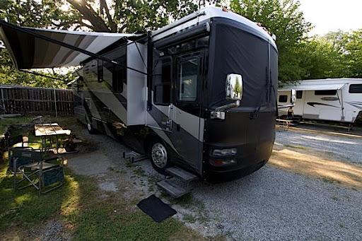 The photos are of the best few sites everything else on gravel and very tight. I saw awnings opened up touching the neighbors slideouts.