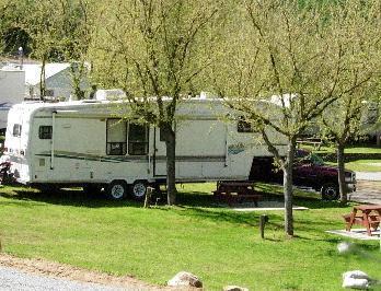 Very small and tight for anything over 30'. Made reservation weeks in advance for 50 amp service. At check in was told they only had 2 and both were taken. Reservations dont mean much here. I was offered an extra night at no cost for the problem. Park is very old, but - is the shortest drive to the National Forest.